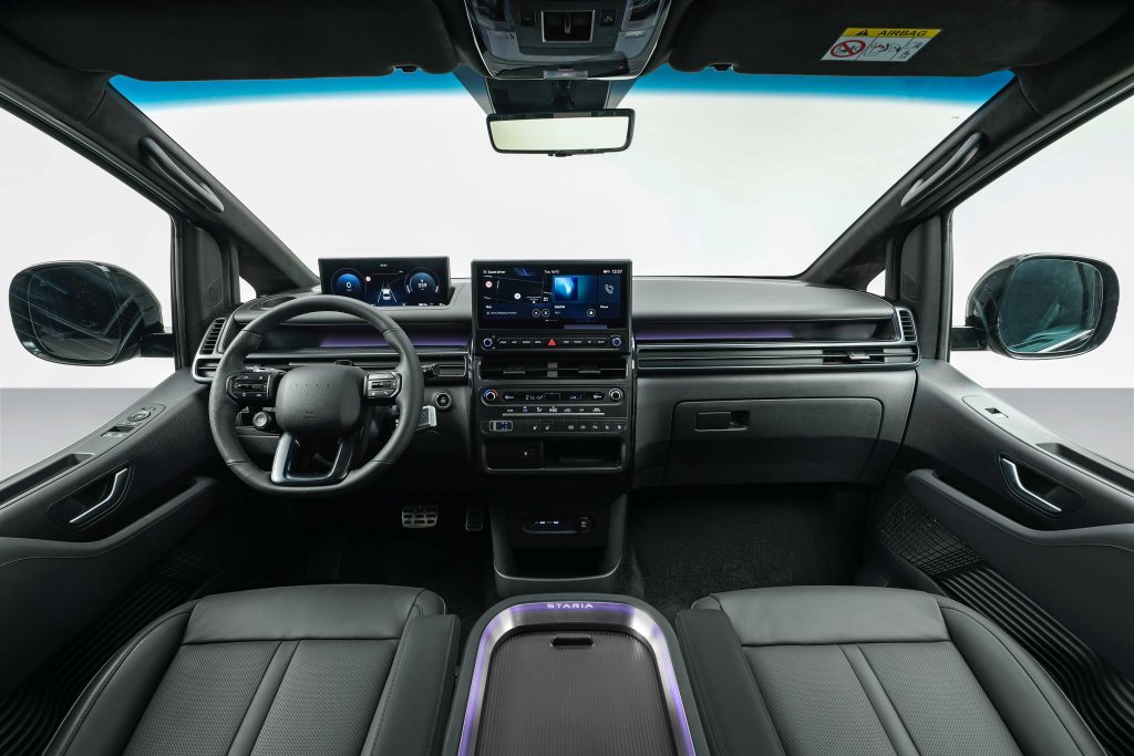 Το Νέο STARIA Electric παραμένει πιστό στις βασικές αξίες που χαρακτηρίζουν τη γκάμα του μοντέλου: ανθρωποκεντρική προσέγγιση, άνεση στο εσωτερικό και διαισθητική λειτουργικότητα.
