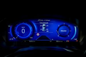 Χάρη στα ειδικά φίλτρα της πολυανθρακικής επιφάνειας προβολής, η οθόνη είναι εξαιρετικά ευανάγνωστη ακόμα και από χρήστες που φοράνε πολωτικούς φακούς. Ανάλογα με την έκδοση, διαμορφώνονται και οι πληροφορίες που προβάλλονται, όπως ταχύτητα κίνησης – η μόνη που είναι πάντα σταθερή – Traffic Sign Recognition, ACC, πλοήγηση, Shift Indicator, σύστημα ψυχαγωγίας και ειδοποιήσεις έκτακτης ανάγκης.